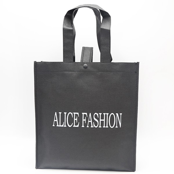 pp stitched handle sewing printing non woven bag with black fastener Images |